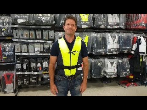 Seglarväst i klassisk form. Justerbart midjeband med snabblås och hällor. Knytband i hals och midja.
