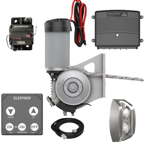 Midi ankarspel 600w, manual, MCU styrbox, automatsäkring 150A, kontrollpanel med 7m kabel. Skrovgenomföring Midi.