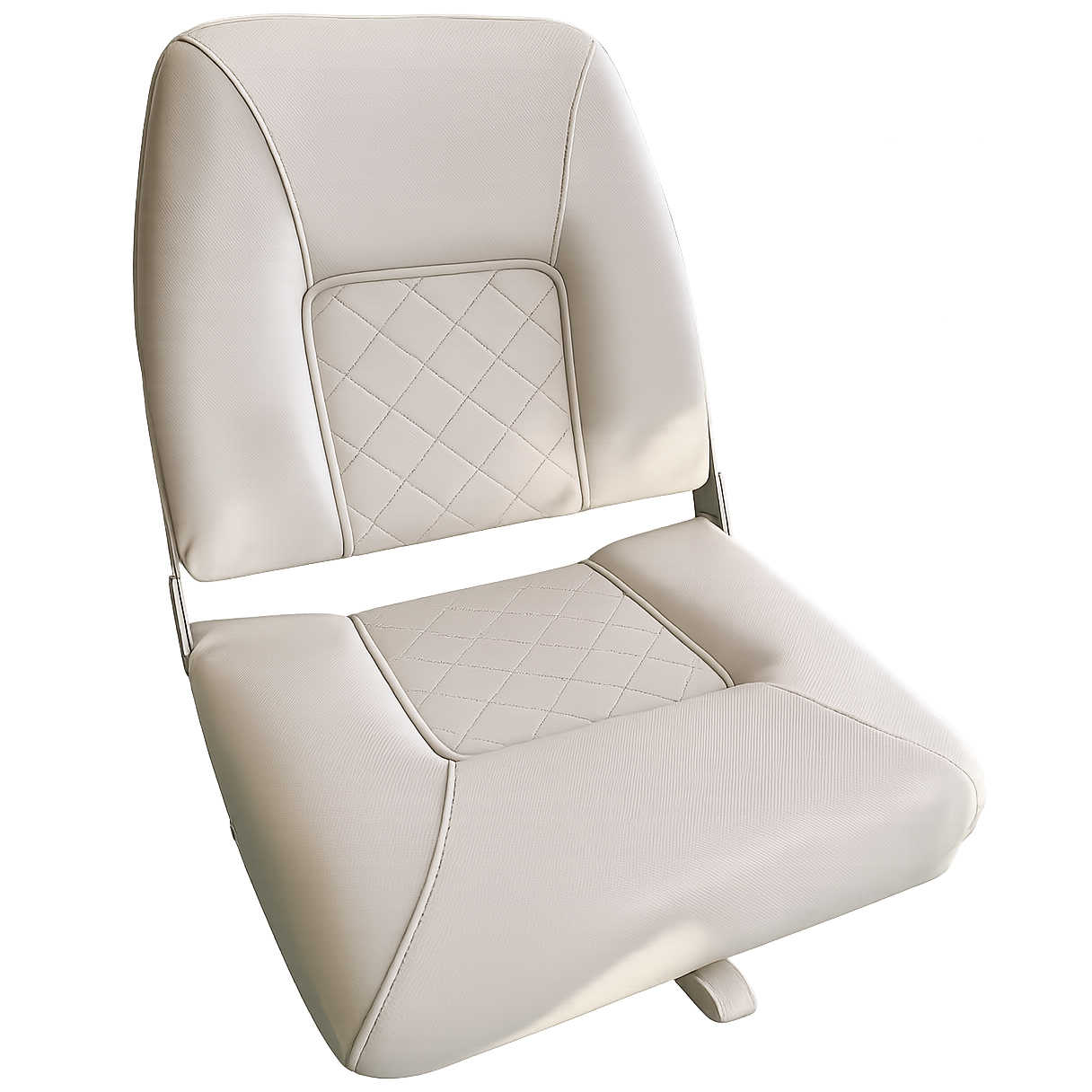 Mittdelen på både ryggstöd och sittdel är diamantsydd, vilket ger stolen ett exklusivt och modernt uttryck. Den enfärgade designen – samma färg på rygg och sittdel – skapar ett stilrent och harmoniskt helhetsintryck som passar de flesta båtar.
