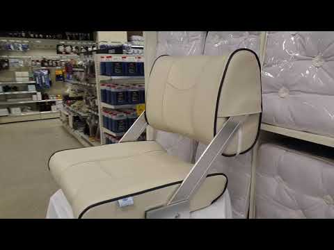 Båtstol som med en enkel rörelse kan vändas för att sitta i motsatt riktning. Kan även monteras på befintlig bänk och behöver inte monteras på en vridbar platta. Stommen är tillverkad av hård plast, vadderad med skum och klädd med marin vinyl. Färg: Ljusgrå med mörkblå sömmar.