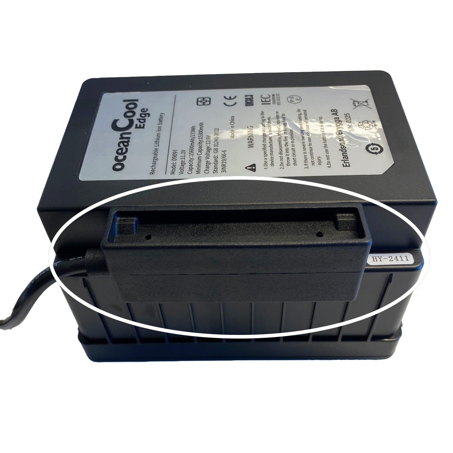 Batteriladdare för Batteri Oceancool Edge (art.nr: 09091). Med denna laddar du batteriet utanför din Oceancool Edge Kylbox. Lämna Kylboxen i båten, Husvagnen eller Bilen och ta enbart med batteriet hem för att ladda.