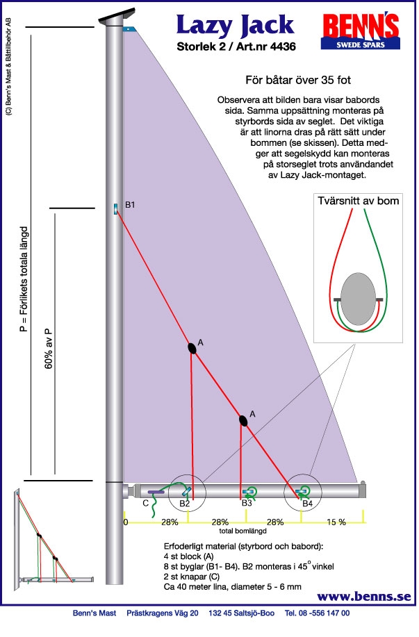 Lazy Jacks 2, för båtar över 35 fot, standardbomSpecifikationer