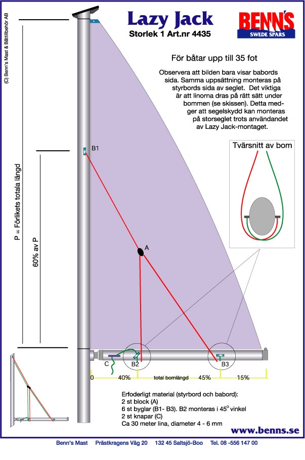 Lazy Jacks 1, för båtar upp till 35 fot, standardbomSpecifikationer