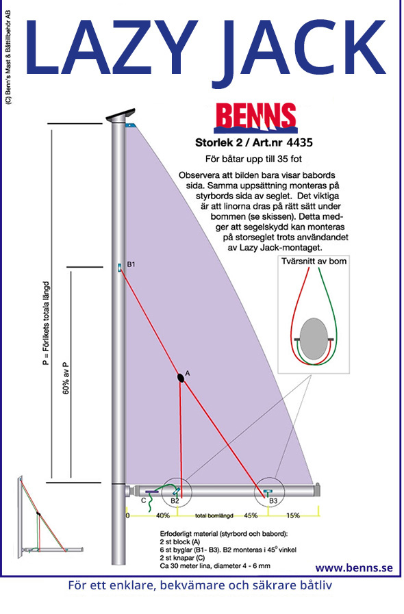 Lazy Jacks underlättar segelhanteringen. Inga mer storsegel som faller ner på däck eller i vattnet. Lazy Jacks fångar upp seglet på ett enkelt sätt.