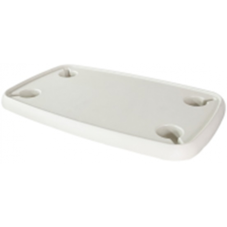 Rektangulär bordsskiva i vit ABS-plast. Fyra integrerade mugghållare. Passar utmärkt med bordsstativ 07530 och 07531.