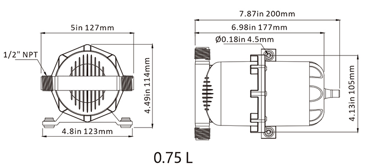 Material Plast Vikt (g) 360 Volym (L) 0,75 Information in och ulopp-diameter: 1/2" Lev. artikelnummer SFAT-075-125-01 -