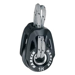 Kullagrat block som monteras med Dyneemalina (ingår). Hög styrka i förhållande till vikt.