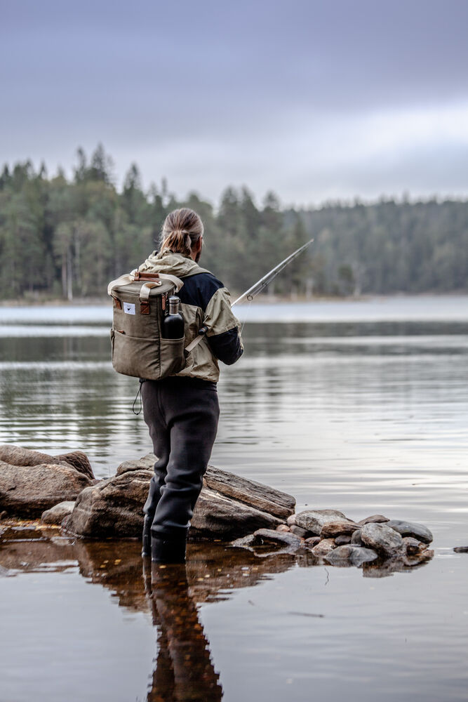 Proper ryggsäckskylbag i ordentlig canvas, stort huvudfack och tre mindre fickor för tillbehör. Ryggsäcken har reglerbara remmar och håller picknicken väl kyld under hela dagen. Detaljer i PU-läder.