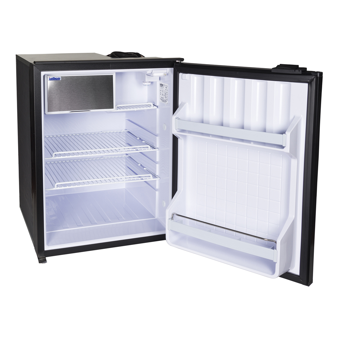 Isotherm CR 85 är ett kylskåp som kombinerar generös förvaringskapacitet med smart design. Med ett 6-liters frysfack utrustat med en lucka, erbjuder CR 85 gott om utrymme för att förvara både kylda och frysta varor på ett effektivt sätt. Kylskåpet är särskilt utformat för att rymma både liggande och stående PET-flaskor samt mjölkpaket, vilket gör det enkelt att organisera dina drycker och matvaror.