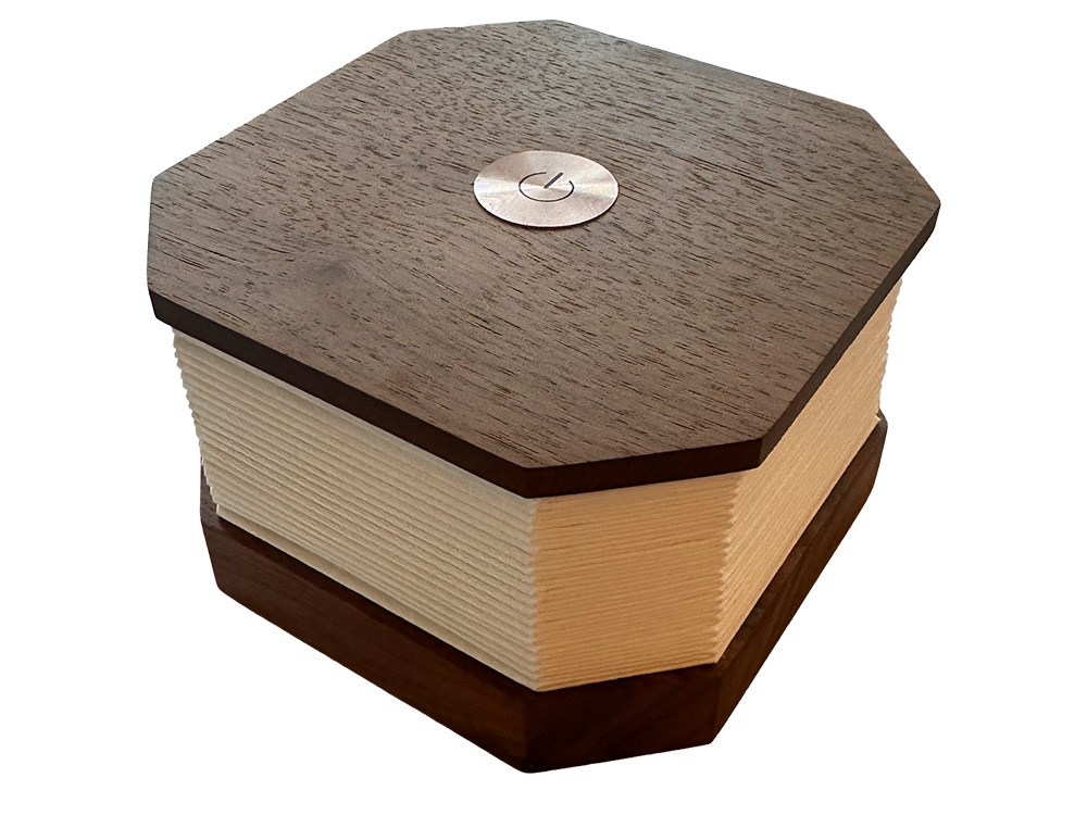 Den perfekta kombinationen av design och funktionalitet med denna exklusiva batteridrivna lampa i valnötsträ. Den unika hopfällbara konstruktionen gör att lampan enkelt kan anpassas efter behov – från en kompakt höjd på endast 6 cm till en elegant, varmlysande belysning som skapar stämning var du än är.