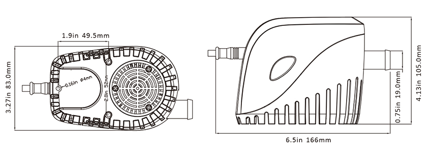 Sughöjd 2 m Förbrukning 12V (A) 2.5 A (Max 4.0 A) Anslutning ø19 mm Kapacitet (L/min) 37 Säkring 5 A Volt (V) 12 Information Dränkbar – jobbar helt under vatten -