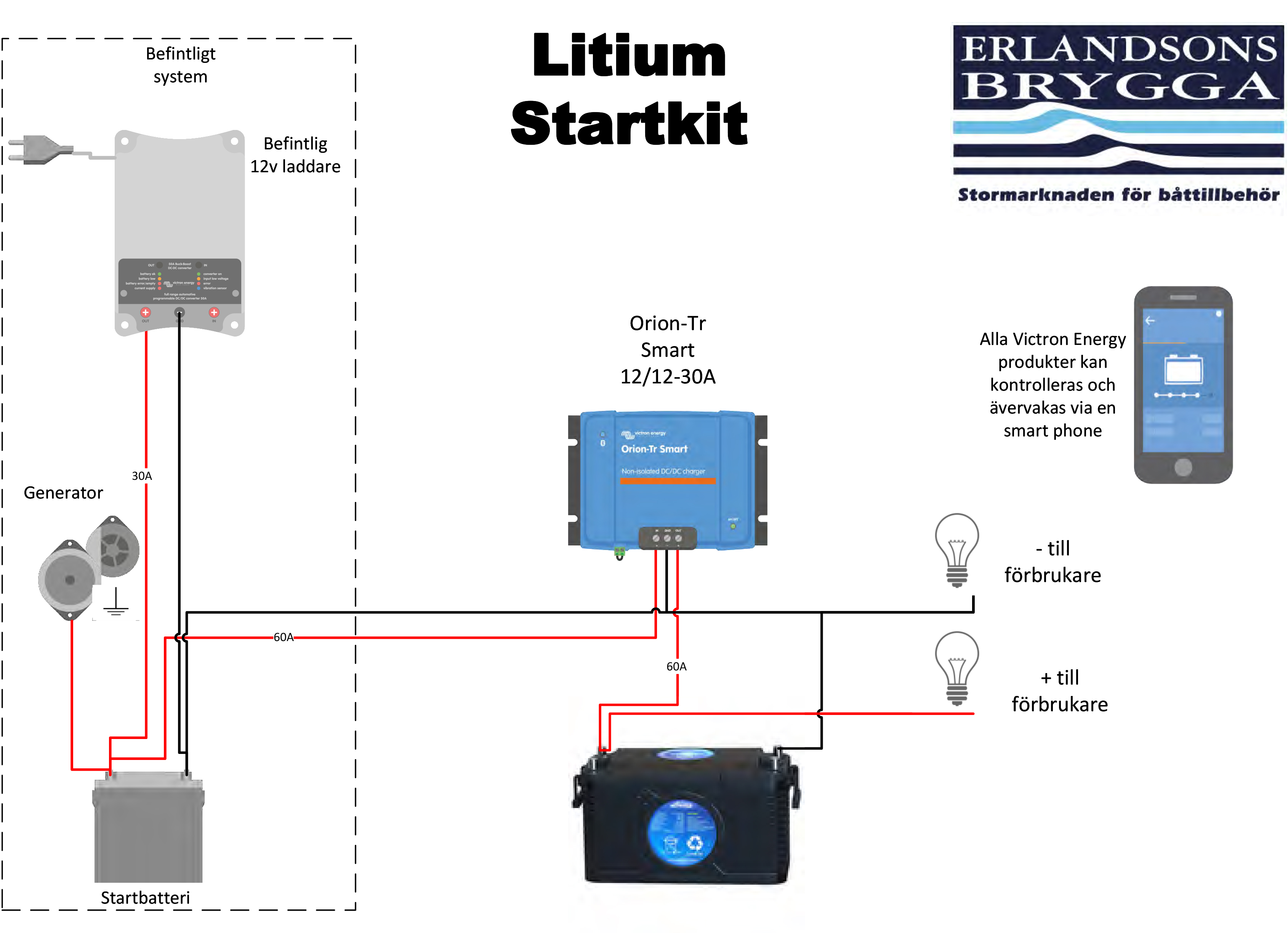 1 st DC-DC Laddare Victron Orion-TR Smart 12/12-30A (Art.nr: 10947)Lilead S200 Litium Dual (12,8V 200Ah) (Art.nr: 15544):