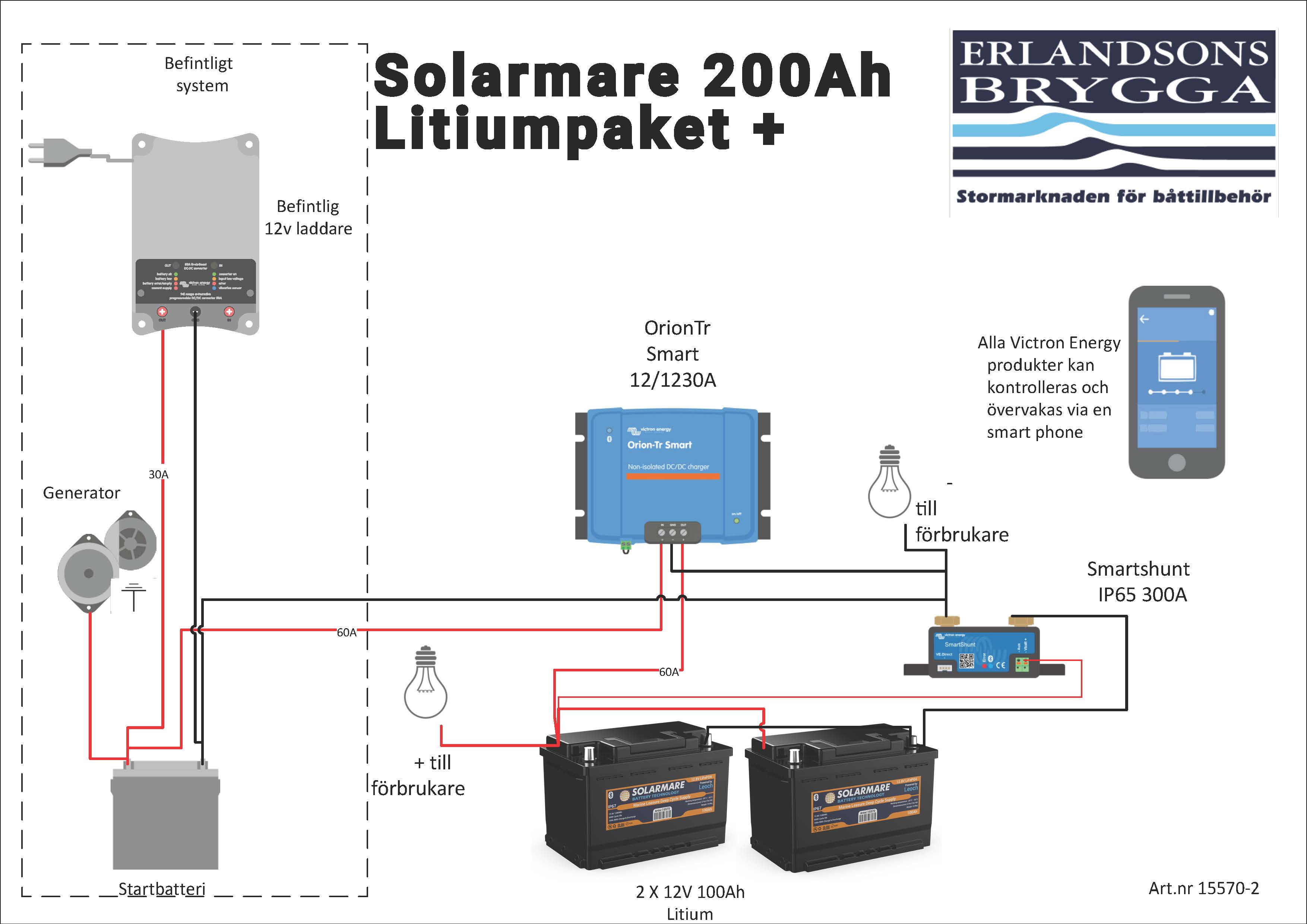 Solarmare-batteriet har en integrerad, välutvecklad BMS som är byggd för att hantera dina höga krav och skydda vid varierande belastning. Tillsammans med komponenter från välrenommerade Victron får du kontrollerad, korrekt & övervakad laddning till din batteribank. Kombinationen ger en stabil och driftsäker lösning för båtägare som vill uppgradera till litium med trygg funktion över tid.