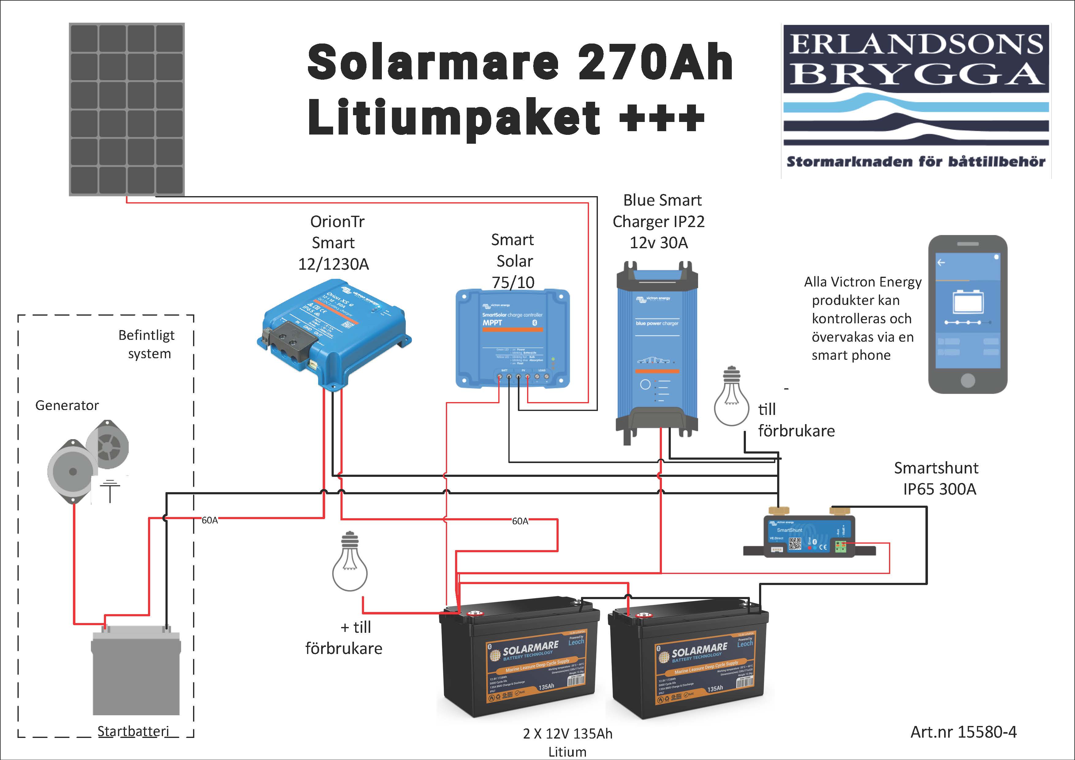 Solarmare-batteriet har en integrerad, välutvecklad BMS som är byggd för att hantera dina höga krav och skydda vid varierande belastning. Tillsammans med komponenter från välrenommerade Victron får du kontrollerad, korrekt & övervakad laddning till din batteribank. Kombinationen ger en stabil och driftsäker lösning för båtägare som vill uppgradera till litium med trygg funktion över tid.