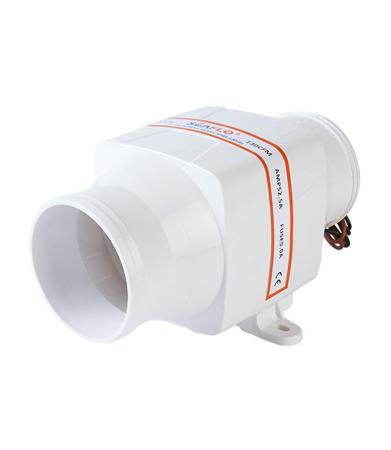 SEAFLO:s 3-tums in-line fläktar levererar effektiv ventilation i kölsvin, motorrum, pentryn och toalettutrymmen. Med hög prestanda och optimal luftgenomströmning är fläktarna designade för pålitlig och långvarig drift.