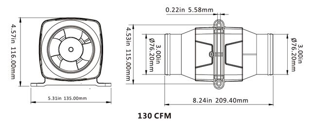 Max A 1.3A Säkring 3.0A Volt (V) 12 Information Luftflöde (cfm/cmh): 130/220 Information Luftintag diameter: 3"/76 Lev. artikelnummer SFIB2-130-01 -