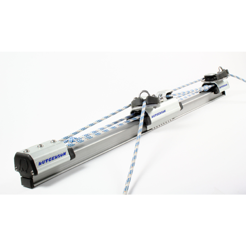 Komplett med oborrad skena, 32mm bred som är 150 cm lång, rullagrad vagn med cleats, flytande stopp.