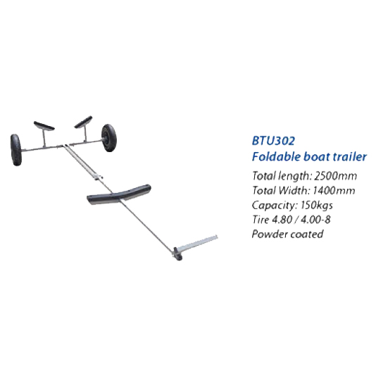 Pulverlackerad båtupptagningsvagn för enkel hantering, förflyttning och sjösättning av mindre fritidsbåtar och gummibåtar. Vagnen har en justerbar ram där längden ställs in efter önskemål för att passa olika storlekar och typer av båtar för att maximera stabilitet och säkerhet. Kan även fällas ihop för att ta mindre utrymme vid förvaring.