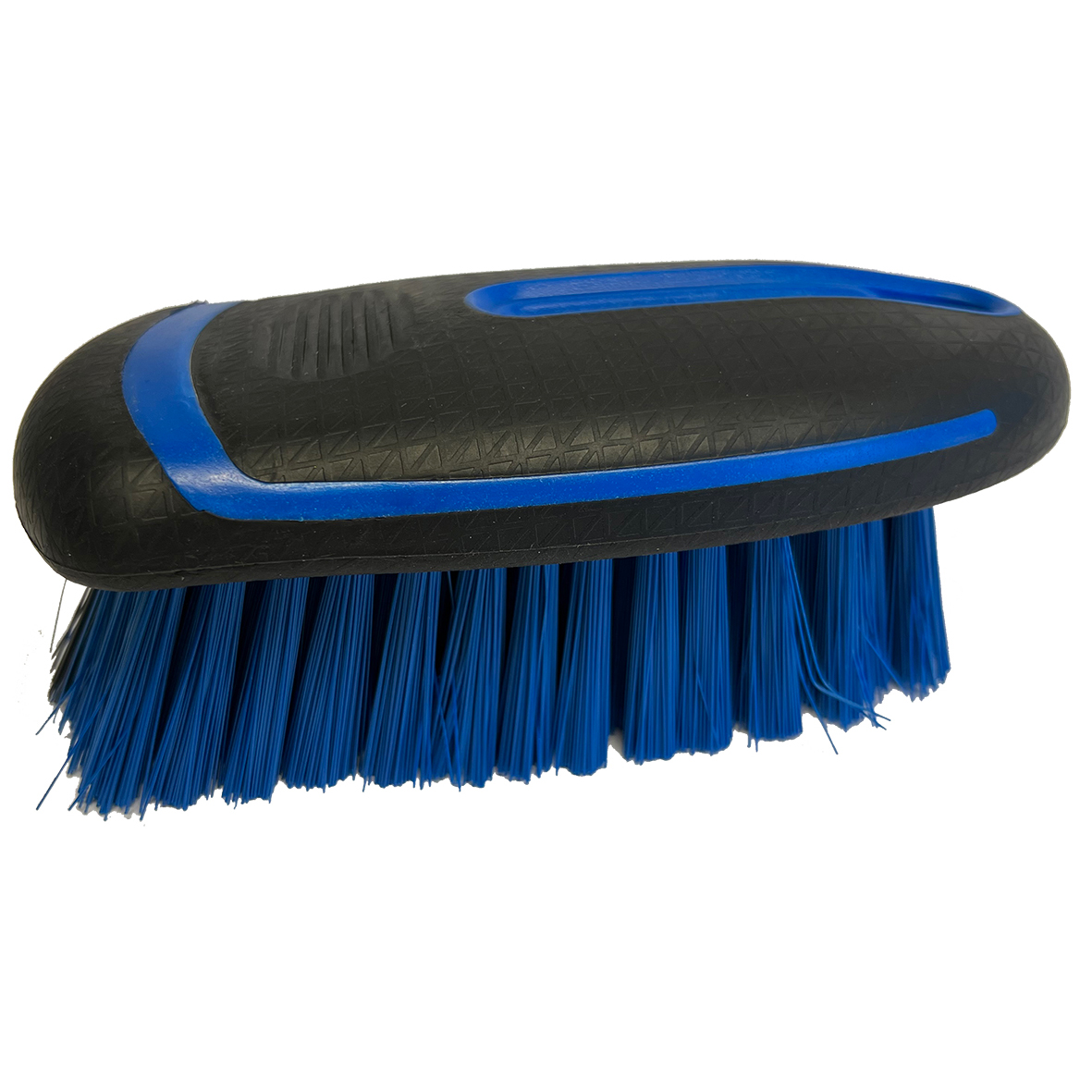 Handhållen skurborste med gummerat handtag. Öga för att fästa rep i.