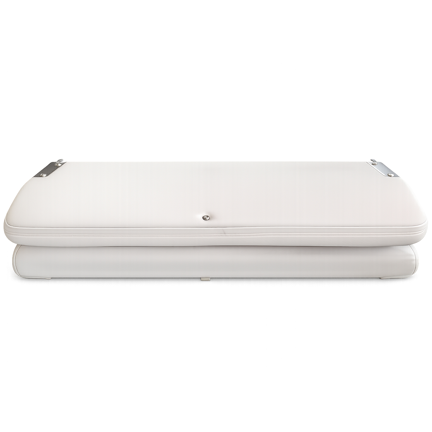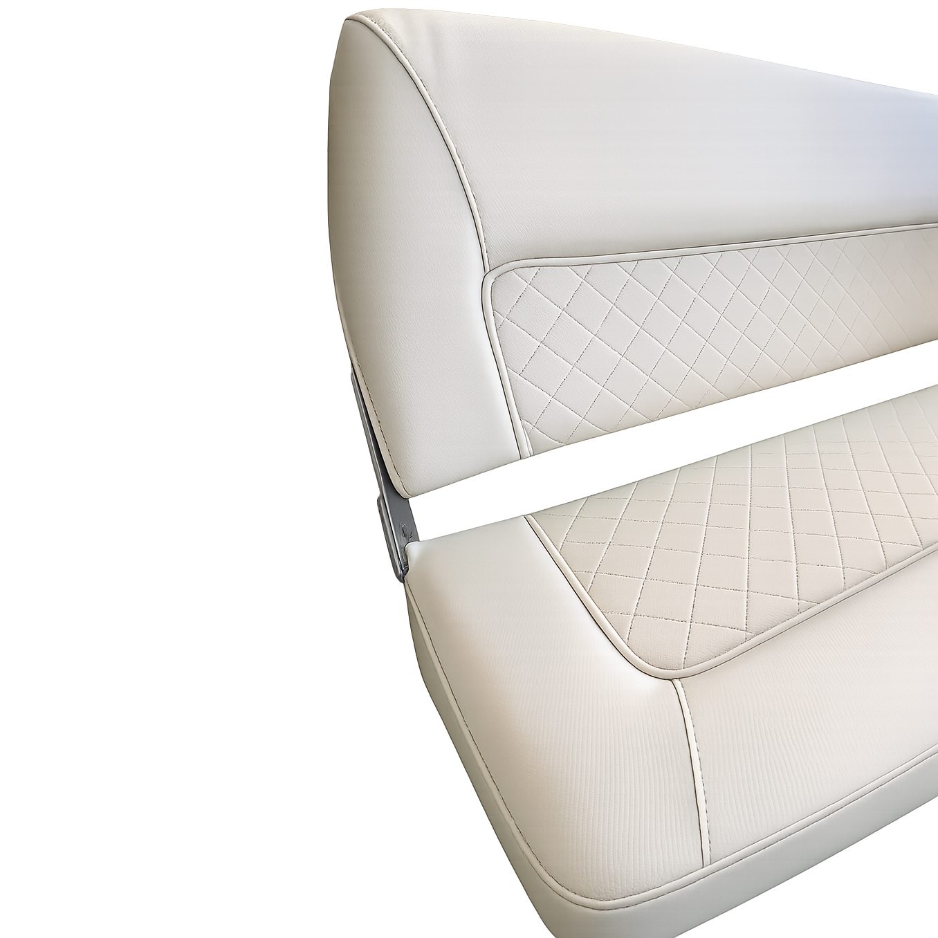 Elegant och modern båtsoffa med praktisk, fällbar konstruktion som gör att den tar mindre plats vid behov. Soffan är tillverkad i slitstark ABS-plast och klädd i marinvinyl med textilliknande känsla, vilket ger en exklusiv look samtidigt som materialet är vattenavvisande och anpassat för marint bruk.