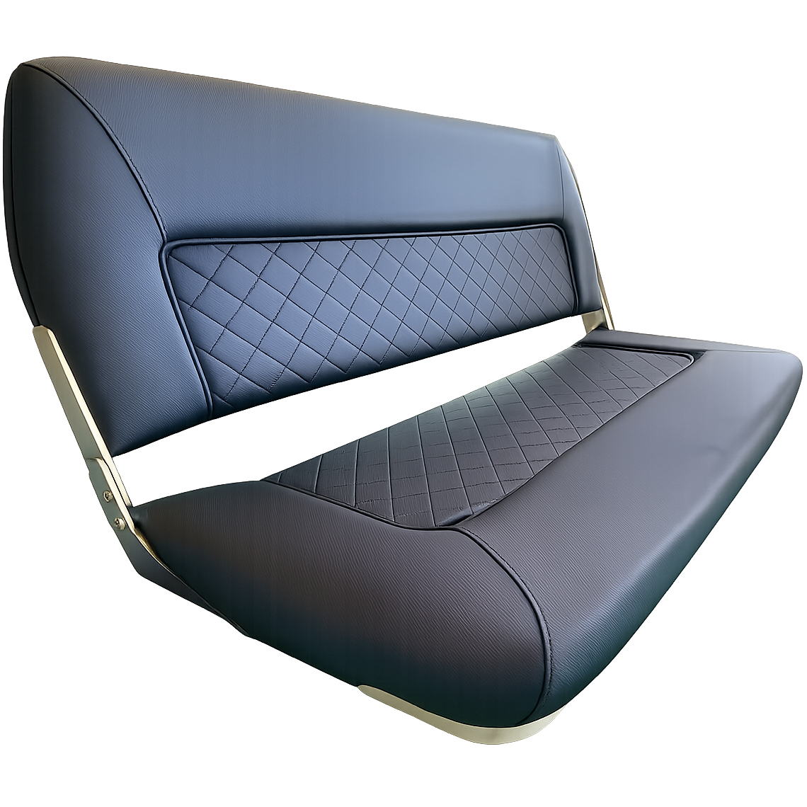 Elegant och modern båtsoffa med praktisk, fällbar konstruktion som gör att den tar mindre plats vid behov. Soffan är tillverkad i slitstark ABS-plast och klädd i marinvinyl med textilliknande känsla, vilket ger en exklusiv look samtidigt som materialet är vattenavvisande och anpassat för marint bruk.