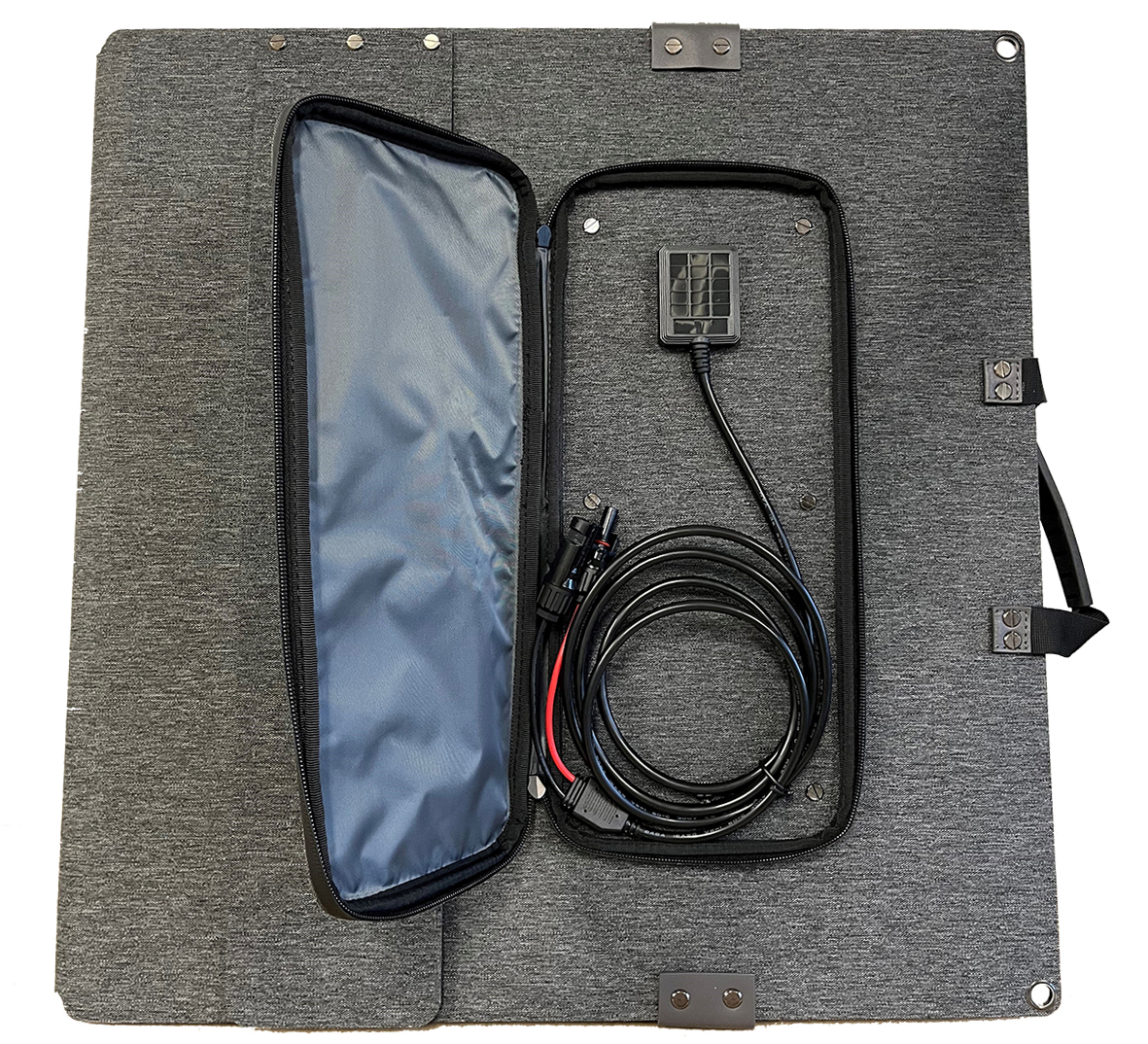 Med denna solpanel kan du utvinna ren och miljövänlig solenergi rakt in i dina batterier utan att vara ansluten till elnätet. Solarmares solcellsserie kombinerar över 15 års erfarenhet och har redan nu framtidens teknik, slutresultatet är enastående. En vattentät vikbar solpanel i kompakt och smidig design med hög kvalitetskänsla, tillverkad med de bästa komponenterna. Just denna solcell är tillverkad med Amerikanska Sunpower-celler för bästa möjliga effektivitet, samt laminerad med högkvalitativ och miljövänlig ETFE film för att garantera bästa effektivitet över lång tid.Solcellen är bestyckad med två stabila justerbara stödben för att åstadkomma optimal vinkel mot solen och därmed högsta energiutvinning. Ifall vinden tilltar och du vill spänna fast din solcell är den försedd med öljetter i rostfritt stål. Cellen har även en stängbar, dragkedjeförsedd ficka, för att enkelt förvara dina kablar tryggt & säkert när solcellen ej brukas. Kablarna är självklart av högsta kvalitet om 4mm², samt en längd på 2m och försedda med MC4 kontakter för enkel inkoppling.