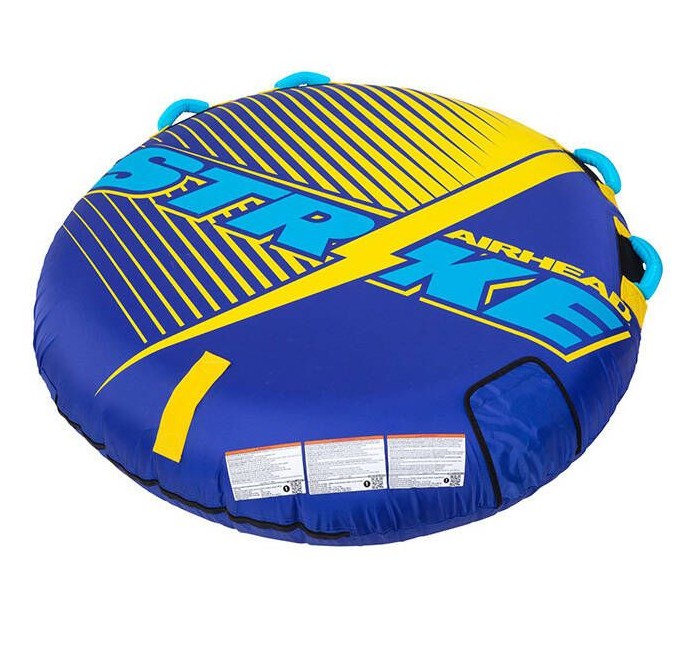Det specialdesignade kittet Airhead Strike-tuben är snabb som vinden och redo att ge extra fart och spänning åt familjens båtliv. Denna tube är robust konstruerad och byggd för att klara många timmar av rolig och actionfylld lek på vattnet. Kittet innehåller ett färgmatchat 15 meter långt dragrep samt en 12 V DC-luftpump, så att du har allt du behöver för att komma igång direkt.Egenskaper