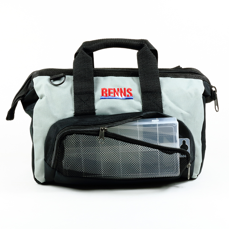 En smart och slitstark verktygsväska med flera förvaringsfack. Liten sortimentlåda och axelband medföljer.