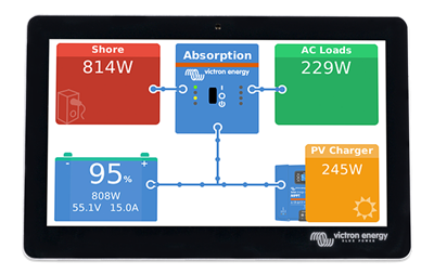 GX TOUCH 70 är en 7" pekdisplay till Cerbo GX. Displayen visar en överblick av dina system och gör det möjligt att enkelt ändra inställningar. Det är bara att ansluta den till Cerbo GX. Den tunna, vattentäta designen och enkla installationen gör det möjligt att få en snygg slimmad instrumentpanel.